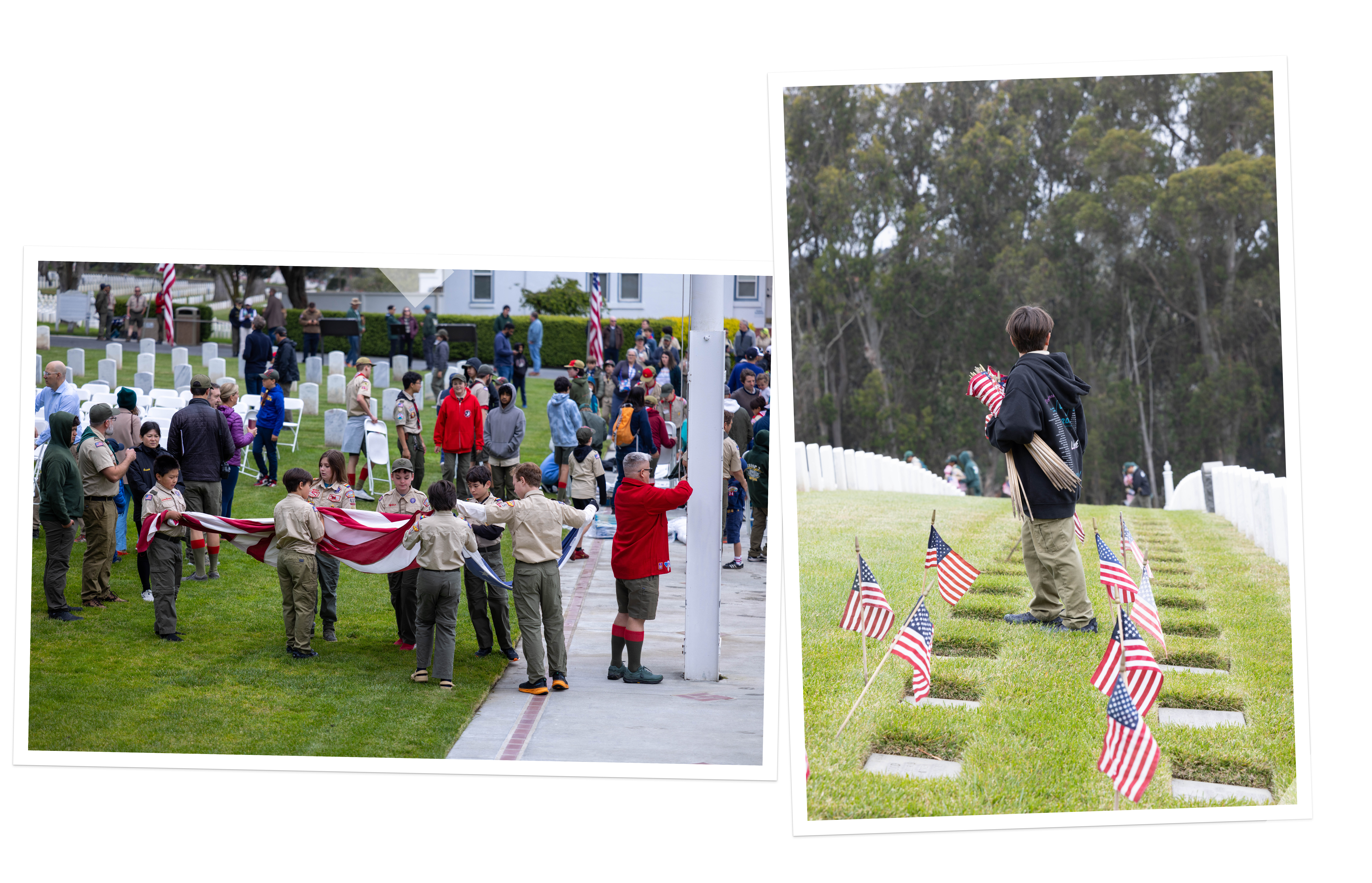 At the San Francisco National Cemetery in the Presidio, Troop 415 hosts the annual flag-planting event.